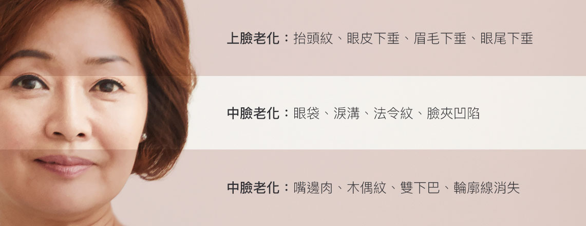 老化常見於臉上的表現可分為-上臉、中臉、下臉